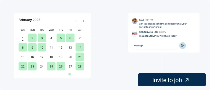 Connect instantly with local EOD professionals to cut costs, while empowering subcontractors to find continuous work closer to home.